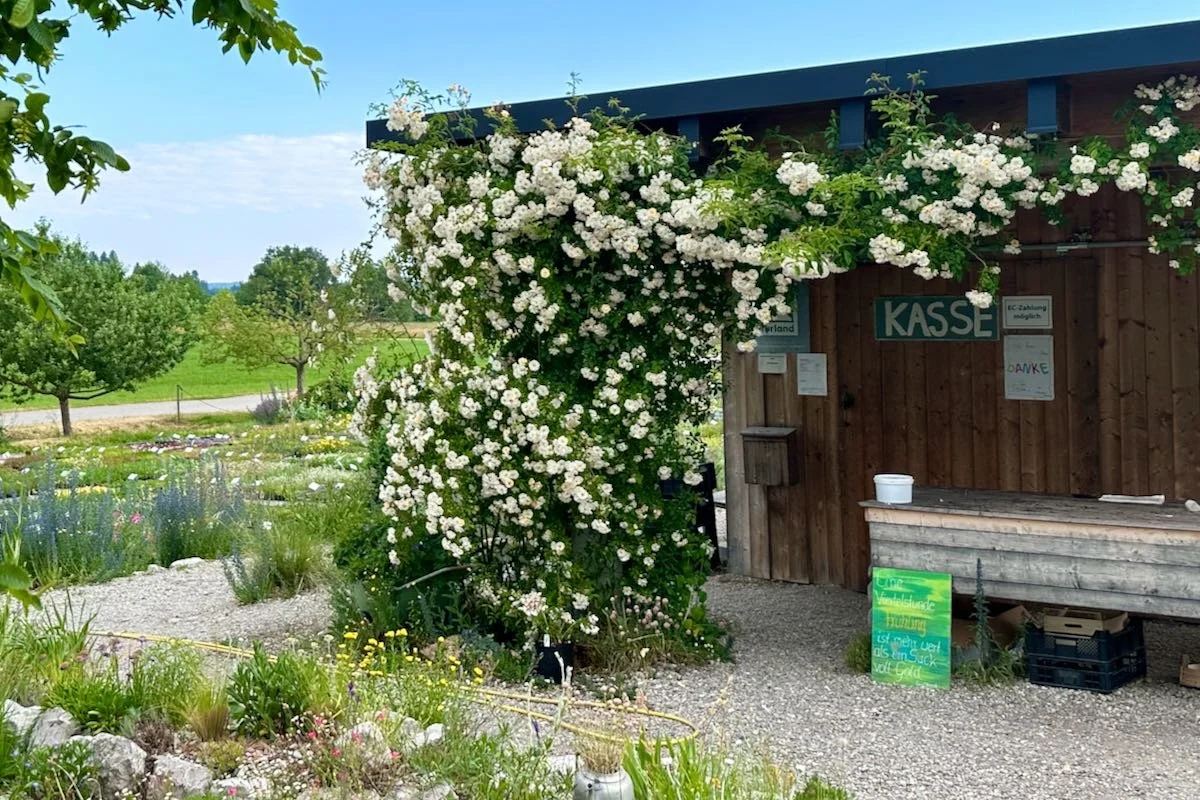 Deshalb darf sie bei uns schon seit Jahren das Kassenhäuschen beranken – und zieht dabei alle Aufmerksamkeit auf sich. Zur Blütezeit hüllt sie alles um sie herum in eine feine, blumige Duftwolke, begleitet vom lebhaften Summen unzähliger Bienen.